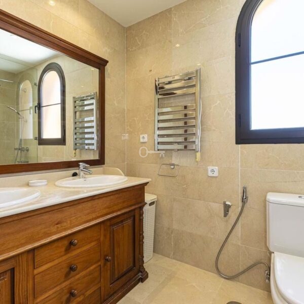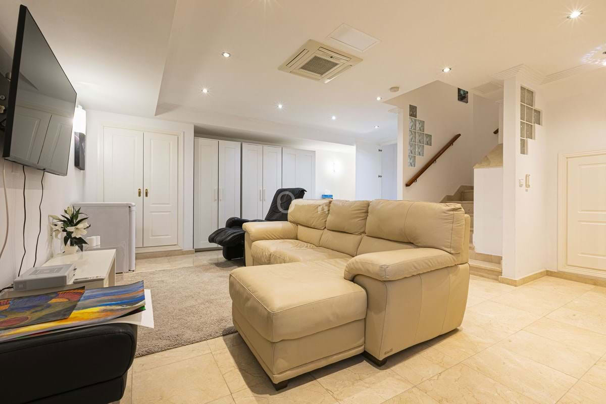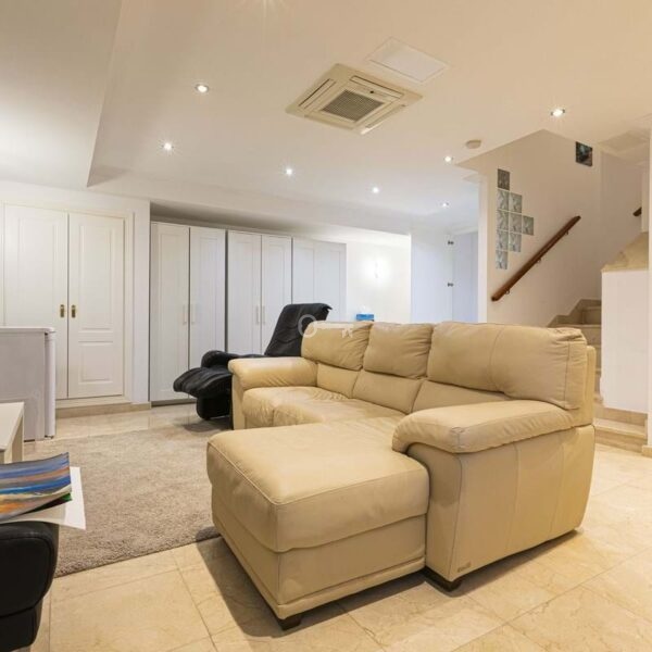Beautiful south-facing, three bedroom townhouse in Los Almendros, part of the secure Los Arqueros Golf community in Benahavís. On the ground level you will find a modern and bright living and dining area with fireplace, fully fitted kitchen, guest toilet and a large terrace for outdoor dining and sunset views. The newly renovated kitchen includes stone worktops, Siemens appliances, and a separate utility room. Upstairs, the main bedroom has its own terrace and en-suite bathroom, while two additional double bedrooms share a family bathroom. The lower level includes a flexible space that can be used as a guest suite, office, gym, or small apartment, along with a new full bathroom and direct access to a private garage with ample storage. The community offers two shared pools set in mature gardens and is conveniently located near golf courses, beaches, hiking trails, restaurants, and international schools.