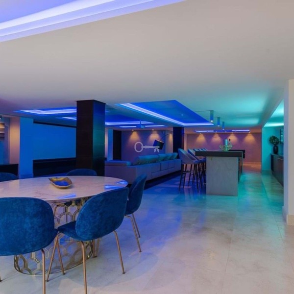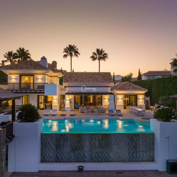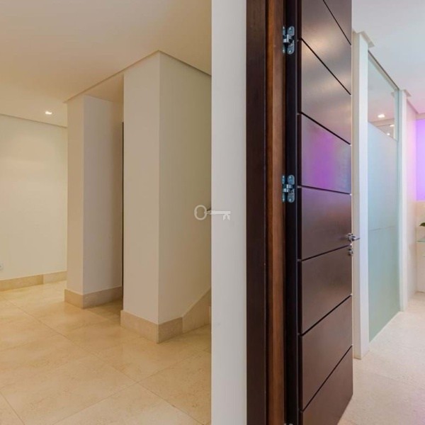 Built to a contemporary design with an extraordinary level of attention to detail, it has the look and feel of a luxury five-star boutique hotel. The current owner designed and built the villa to his own specifications and has the best of automation and entertainment features one could imagine. Everything has been carefully through to provide an opulent living experience. The property is distributed over 4 floors with the Master Ensuite located on the top floor. The remainder of the bedrooms are located on the following 2 floors below. The lowest floor comprises of a fully equipped Spa with professional gymnasium with Technogym equipment, a sauna, steam room, a huge Jacuzzi and a massage room. The entertainment on the floor above room simply takes your breath away when you enter. This room includes a fully fitted bar, professional top of the range home cinema system with a custom designed projector screen which allows viewing in the daylight, a pool table and a dining area. The entire property is controlled via a Control4 Home Automation Domotic system. The owner has put his heart and soul and expertise into the design and fitting of this extraordinary villa and has installed audio-visual equipment of the highest standard . All bathrooms are mix of Villeroy boch, hansgrohe, dornbracht rainshowers and hansa equipment. Woodwork by Quero, Plumbing and electrics by Proinsermante and Tiling byTino. This breath taking villa was designed with entertainment in mind and will wow your guests like no other property can. The owner has even purchased the plot directly in front of the villa to prevent his view from ever being compromised.