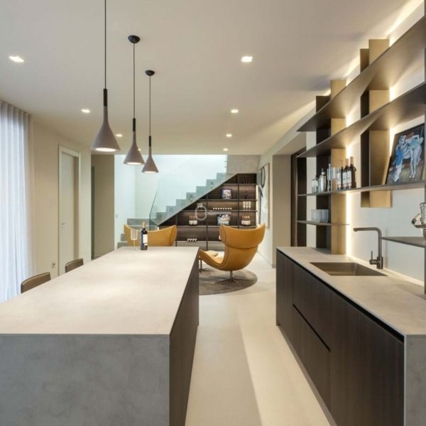 Every corner of the home showcases premium finishes and sophisticated details. Modulnova designer kitchen and carpentry throughout, expansive Schüco aluminium windows (2,300mm and 2,500mm) fill the interiors with natural light, while the LED-lit Schüco pivot main entrance door makes a bold architectural statement.