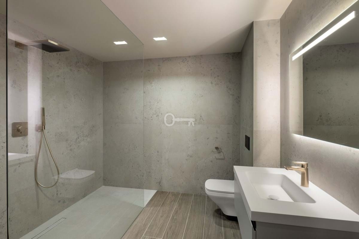The interior is defined by its modern design and exceptional craftsmanship, featuring a polished concrete staircase with button glass balustrade, and Q-Rail glass systems enhancing the terraces. Bathrooms are fitted with sleek Hansgrohe rain showers, porcelain built-in shower trays, and wall-mounted WCs with concealed cisternsall designed for a clean, contemporary aesthetic.