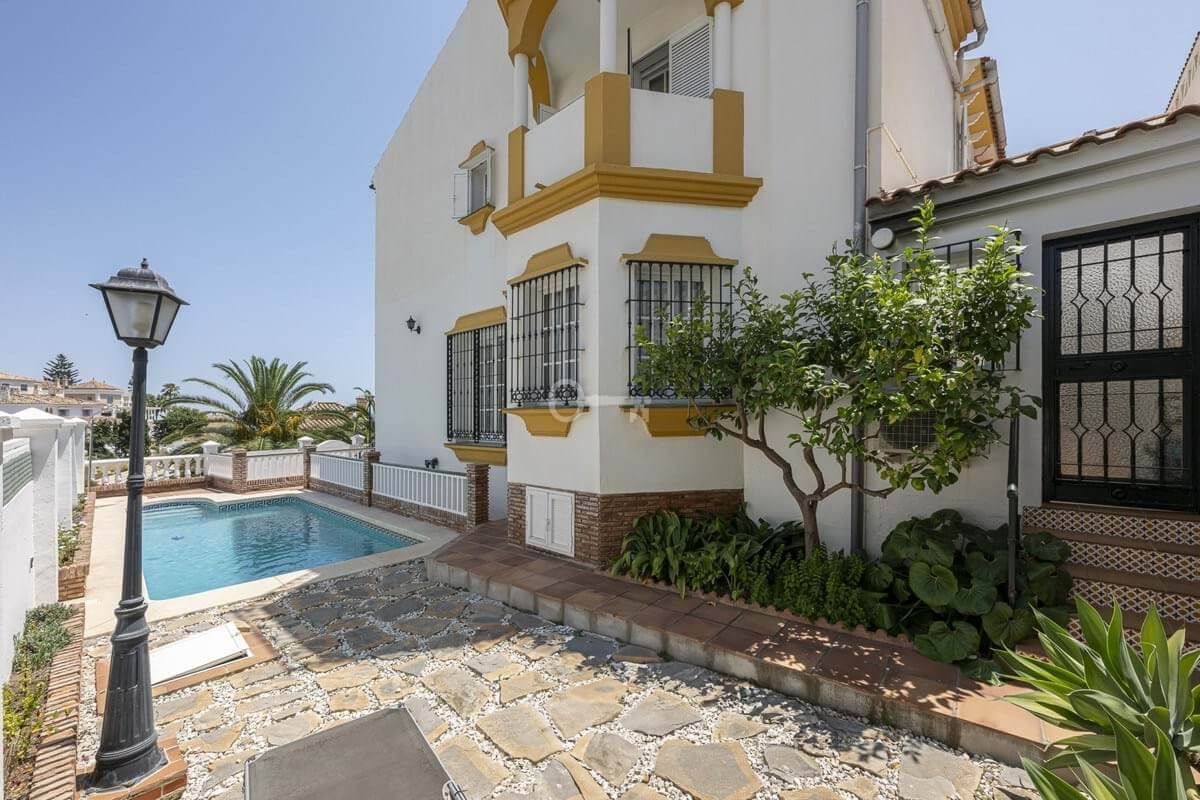 Ideally located to make the most of Málagas coastal lifestyle, this semi-detached villa offers a rare combination of Andalusian charm and significant renovation potential. With 271 m² of built area on a 285 m² plot, the property stands out for its breathtaking sea views, multiple outdoor spaces, and an architectural proposal that showcases all the home could become. The renders created by architects provide a vision for the renovation of the kitchen, dining room, living area, and home office, helping buyers visualize how to fully unlock the potential of this residence.