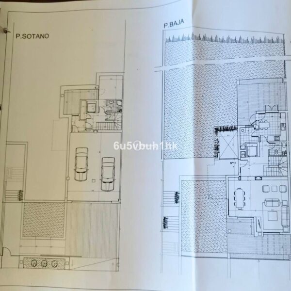 The lower level offers 101 m² built, mainly dedicated to a closed garage with space for two vehicles and direct access to the house. This floor also includes a semi-basement area with a staff bedroom and full bathroom, two storage rooms, and a lift connecting all levels. Additionally, there is exterior parking space for two more cars.