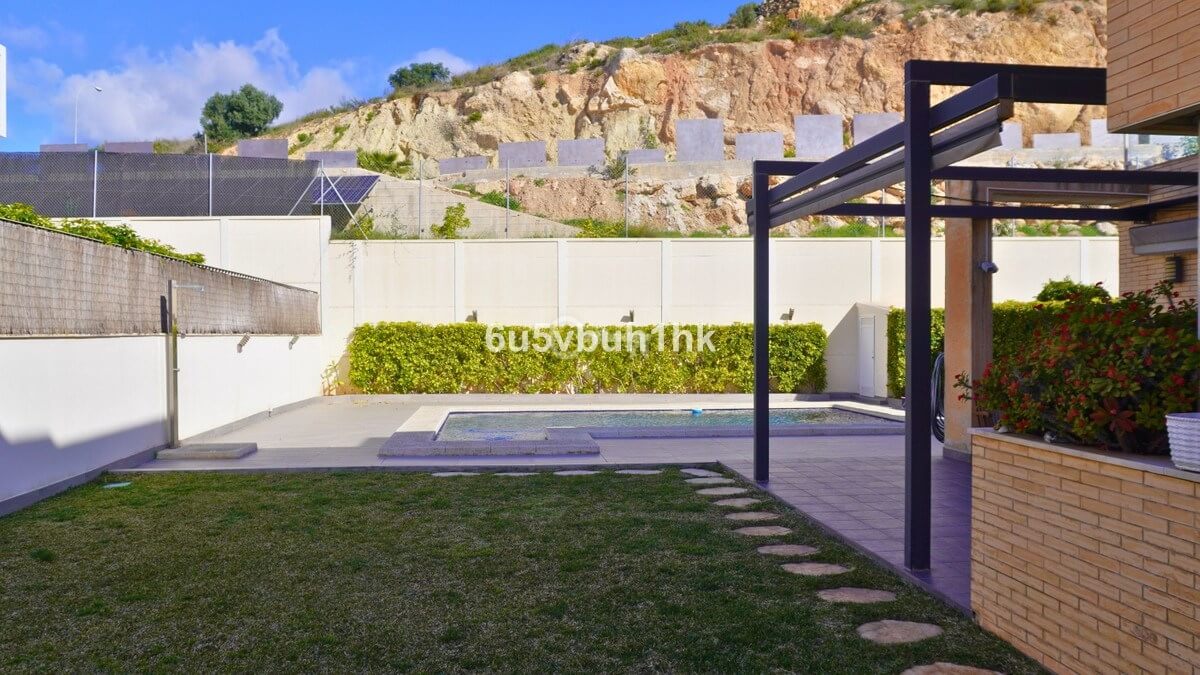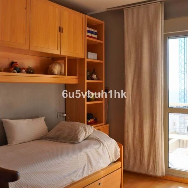 The upper floor features four bedrooms (one currently used as an office) and three en-suite bathrooms. The master bedroom stands out for its size, walk-in wardrobe, private bathroom, and spectacular sea views. All bedrooms include built-in wardrobes, and three of them also have their own private terrace.