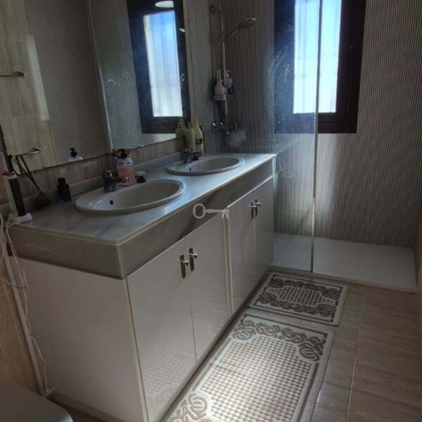 Spanning 260 m² built (180 m² usable) over three levels, the south-facing property is flooded with natural light and offers versatile accommodation. The entrance leads to a fully equipped kitchen, expansive living room with patio doors to a lower terrace, and access to a huge garage plus storage. Ascend to the middle floor with three bedrooms and a family bathroom, including a master suite with en-suite walk-in shower. The top floor hosts an additional bedroom opening to a terrace with breathtaking sea views. Eco-friendly solar panels reduce energy costs, complemented by air conditioning throughout.
