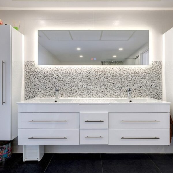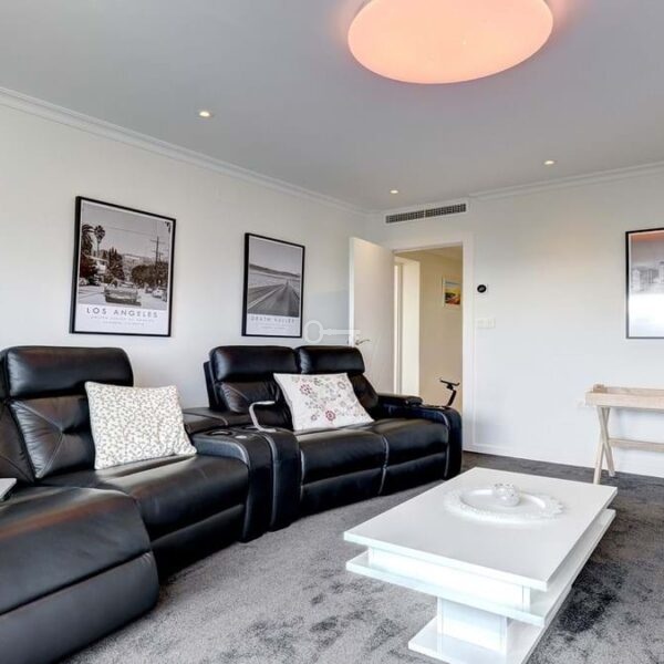 The bright and airy living area opens onto an extended conservatory-style terrace that captures sunlight from sunrise to sunset. Its the perfect space to relax, dine al fresco, or entertain year-round while enjoying the views and natural light.