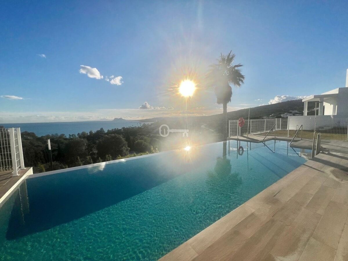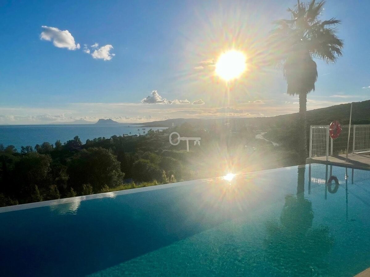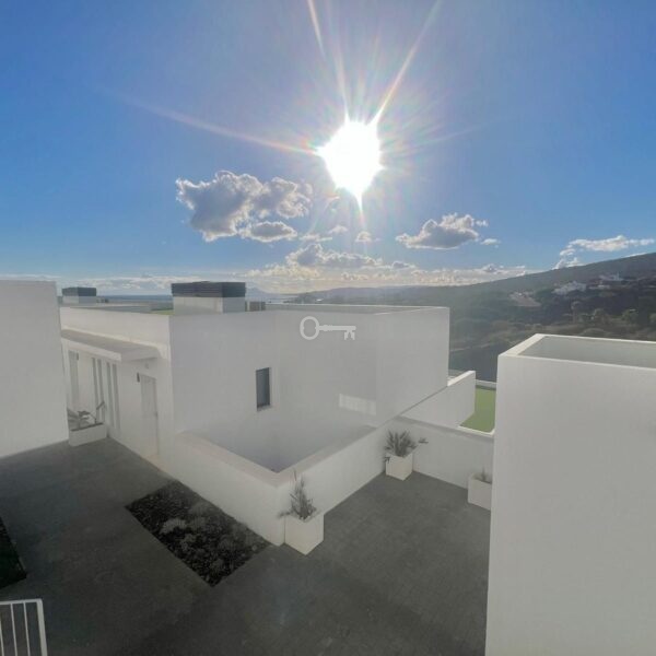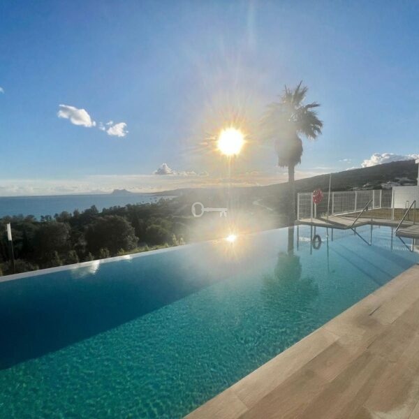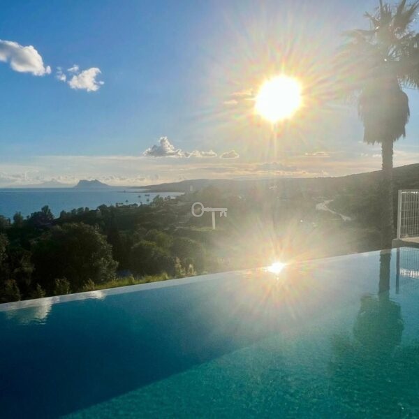 From the moment you enter, a welcoming entrance hall leads to a spacious, light-filled living area featuring an open-plan kitchen, dining area, and a comfortable lounge. This space opens onto a large terrace, a true extension of the interior, offering spectacular views of the sea, Gibraltar, the coast of Morocco, and the surrounding hills. Thanks to its ideal south to south-west orientation, the house enjoys optimal sunlight throughout the day. The property can be accessed directly from the underground parking, with a private entrance leading straight into the house. A laundry room completes this property. The house is sold fully furnished. The development, completed in summer 2025, is a contemporary residential complex consisting of 46 semi-detached homes, designed to offer exceptional panoramic views of the Mediterranean, just a few meters from the beach. The complex stands out for its high-quality materials, generous living spaces, and exclusive amenities, including an infinity pool, gym, and spa. Ideally located close to golf courses and marinas, it is just 15 minutes from Gibraltar Airport and a short distance from Estepona, La Duquesa Port, Sotogrande and only less than 30 minutes fromPuerto Banús, and Marbella. An exceptional property, ideal as a primary or secondary residence or as a high-quality investment, set in a natural and exclusive environment, perfect for enjoying the Costa del Sol climate and the Mediterranean Sea. A must-see!
