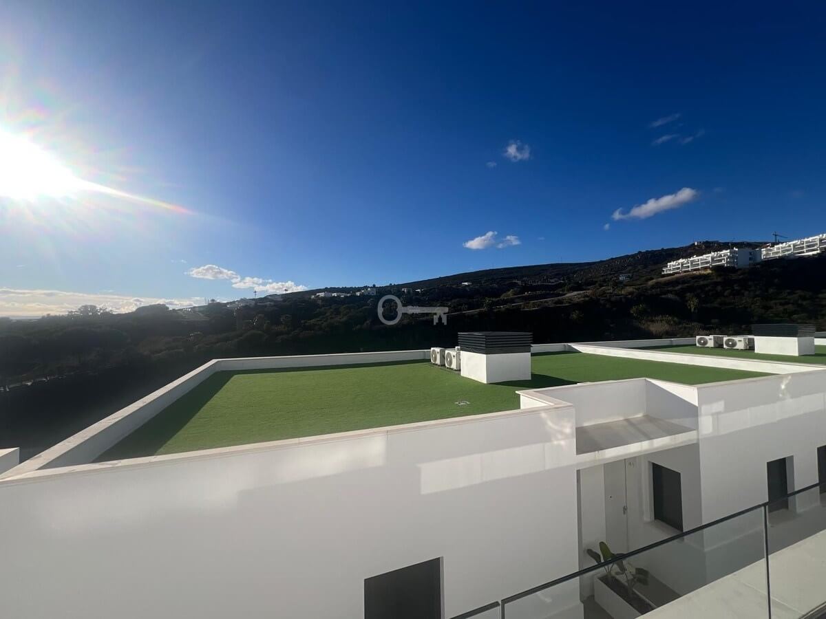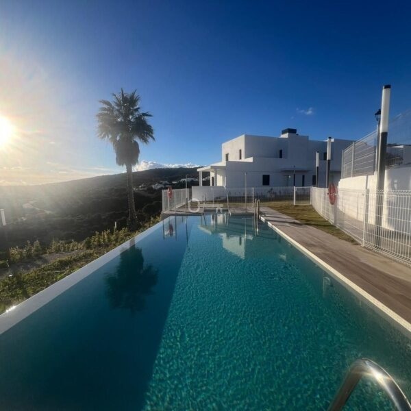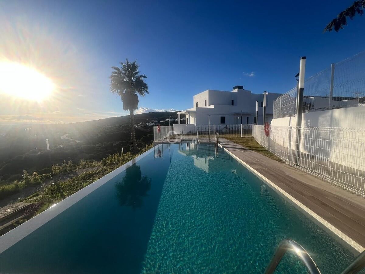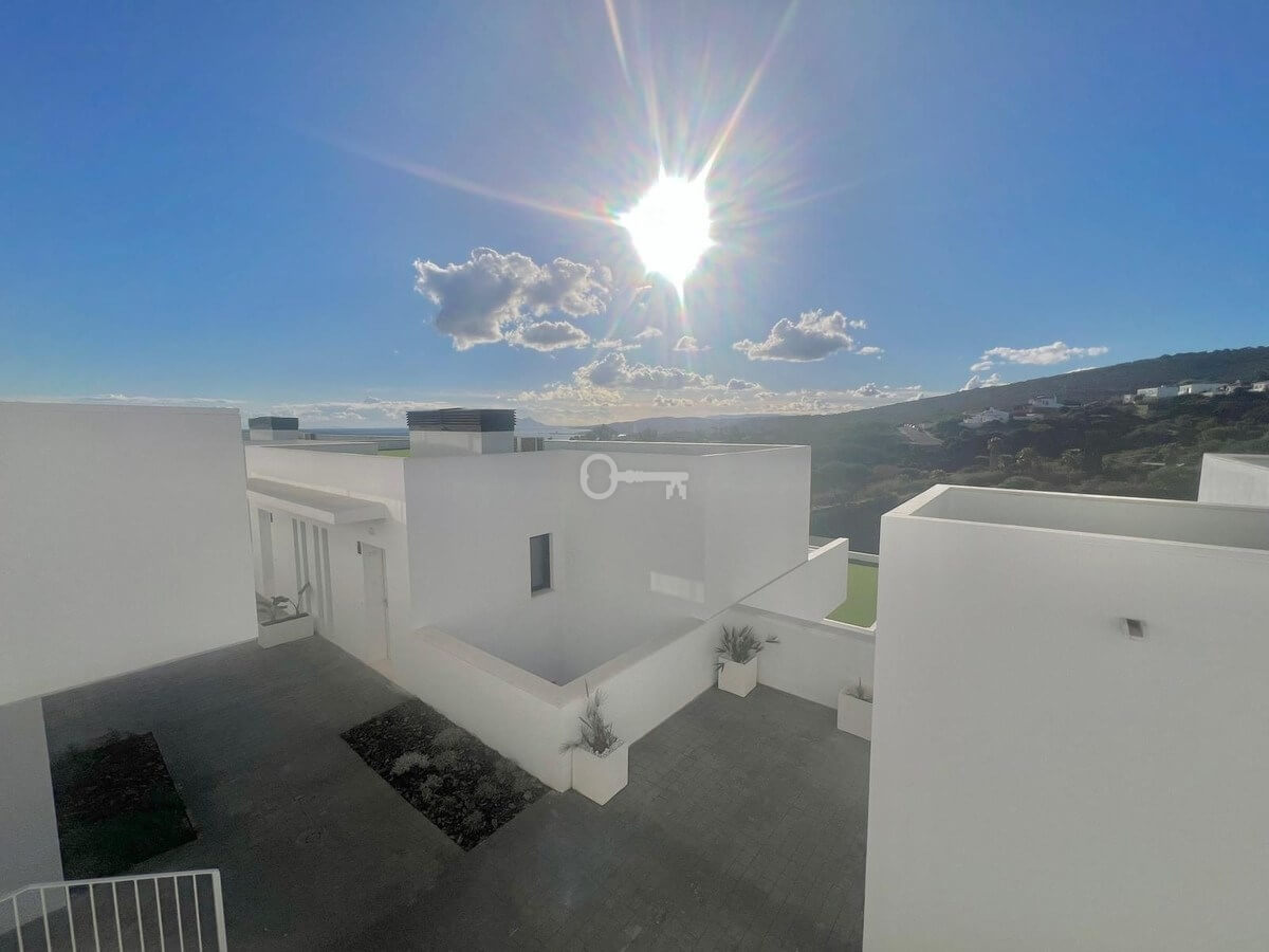 From the moment you enter, a welcoming entrance hall leads to a spacious, light-filled living area featuring an open-plan kitchen, dining area, and a comfortable lounge. This space opens onto a large terrace, a true extension of the interior, offering spectacular views of the sea, Gibraltar, the coast of Morocco, and the surrounding hills. Thanks to its ideal south to south-west orientation, the house enjoys optimal sunlight throughout the day. The property can be accessed directly from the underground parking, with a private entrance leading straight into the house. A laundry room completes this property. The house is sold fully furnished. The development, completed in summer 2025, is a contemporary residential complex consisting of 46 semi-detached homes, designed to offer exceptional panoramic views of the Mediterranean, just a few meters from the beach. The complex stands out for its high-quality materials, generous living spaces, and exclusive amenities, including an infinity pool, gym, and spa. Ideally located close to golf courses and marinas, it is just 15 minutes from Gibraltar Airport and a short distance from Estepona, La Duquesa Port, Sotogrande and only less than 30 minutes fromPuerto Banús, and Marbella. An exceptional property, ideal as a primary or secondary residence or as a high-quality investment, set in a natural and exclusive environment, perfect for enjoying the Costa del Sol climate and the Mediterranean Sea. A must-see!