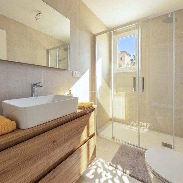 Ground floor: 2 large bedrooms with built-in wardrobes and private terrace, 1 full bathroom. Access to porch and large garden with pool.