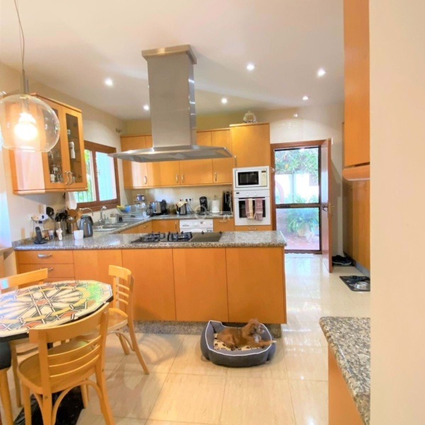 The villa is built on a plot of approx 600m2, on the ground floor there is a spacious living-dining room, kitchen with office, master bedroom with ensuite bathroom and guest toilet. Large outside terrace with sea views. Outside dining area with wood oven and BBQ area. On the first floor there are two further bedrooms each with its own bathroom. Both bedrooms have access to a private terrace with panoramic sea views.