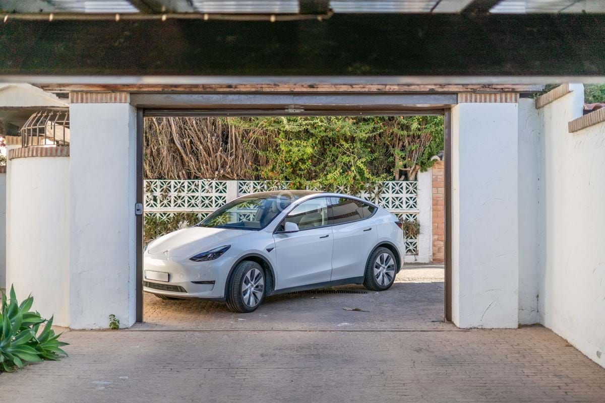 Inside, the house is bright and open, with a fireplace, underfloor heating, A/C in all rooms, and 30 solar panels to reduce electricity costs. Outside youll find a lush tropical-style garden, private pool, large garage (fits several cars), and room to expand either by adding another level or building a separate one-floor house (subject to approval).