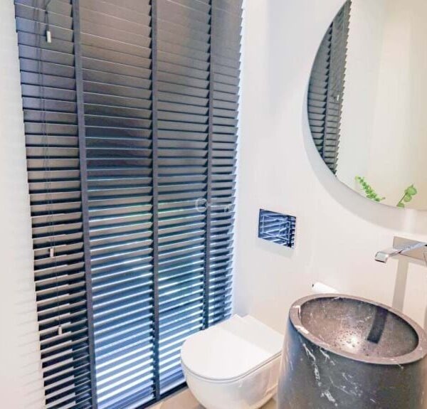As soon as you enter the main hall, the stunning and breath-taking garden view becomes a permanent backdrop of green visible from the living and kitchen. The elegant living area with ethanol fire place is an open plan area for comfortable living and dining with impressive ceiling height and large windows enhancing the feeling of space and light. The kitchen is open plan and includes Gaggenau appliances. Every attention to detail has been thought of in the kitchen from the large island with an incorporated champagne cooler and coffee corner.