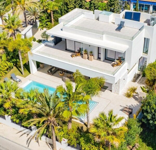 Built to a very high standard this contemporary luxury villa is strategically located near Elviria. Set on 3 levels and over 500m2 built located on a corner plot just 50 meters from the beach and a minutes walk to 5 beach restaurants. The home is exquisitely decorated with carefully chosen designer interiors, warm fabrics, wooden features & mature gardens