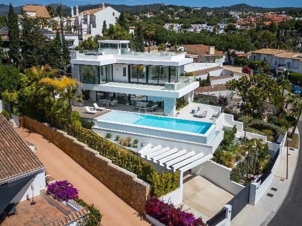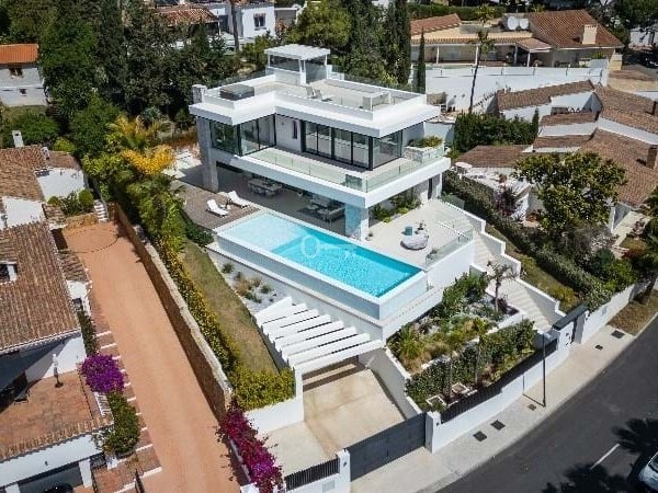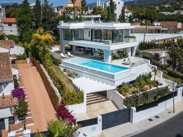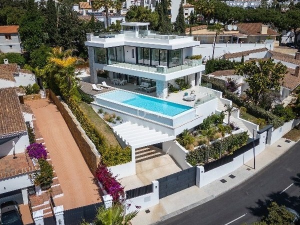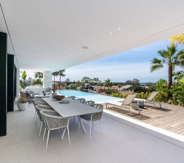 Ultra modern stylish villa with breathtaking sea views, situated in the trendy beach resort Marbesa, just a short walk from the beautiful white sandy beach. The villa was recently completed to the highest qualities and is offering a beautiful interior design throughout, furnished with the latest trends as well as built with top eco-friendly materials.