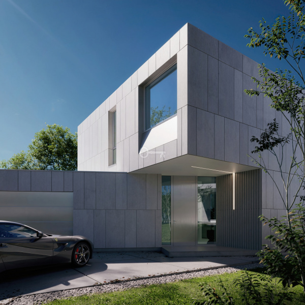 The Monolit housing estate is a modern investment consisting of 8 residences with unique architecture and functional interior layouts. The houses have an area of 223 to 268 sqm, individually designed gardens and fully landscaped space. The inspiration for the project was monoliths, huge boulder deposits left by the ice age, reflected in the stone finish of the roof and building elevations. The architecture is dynamic and fluid, referring to the geometry of crushed ice crystals. The interiors are high and spacious, and the functional program allows for free arrangements. The estate is located in the midst of ancient oak trees, with access to a communal zone with an automatic gate and landscaped gardens, providing a haven and a place of relaxation from the hustle and bustle of the city.