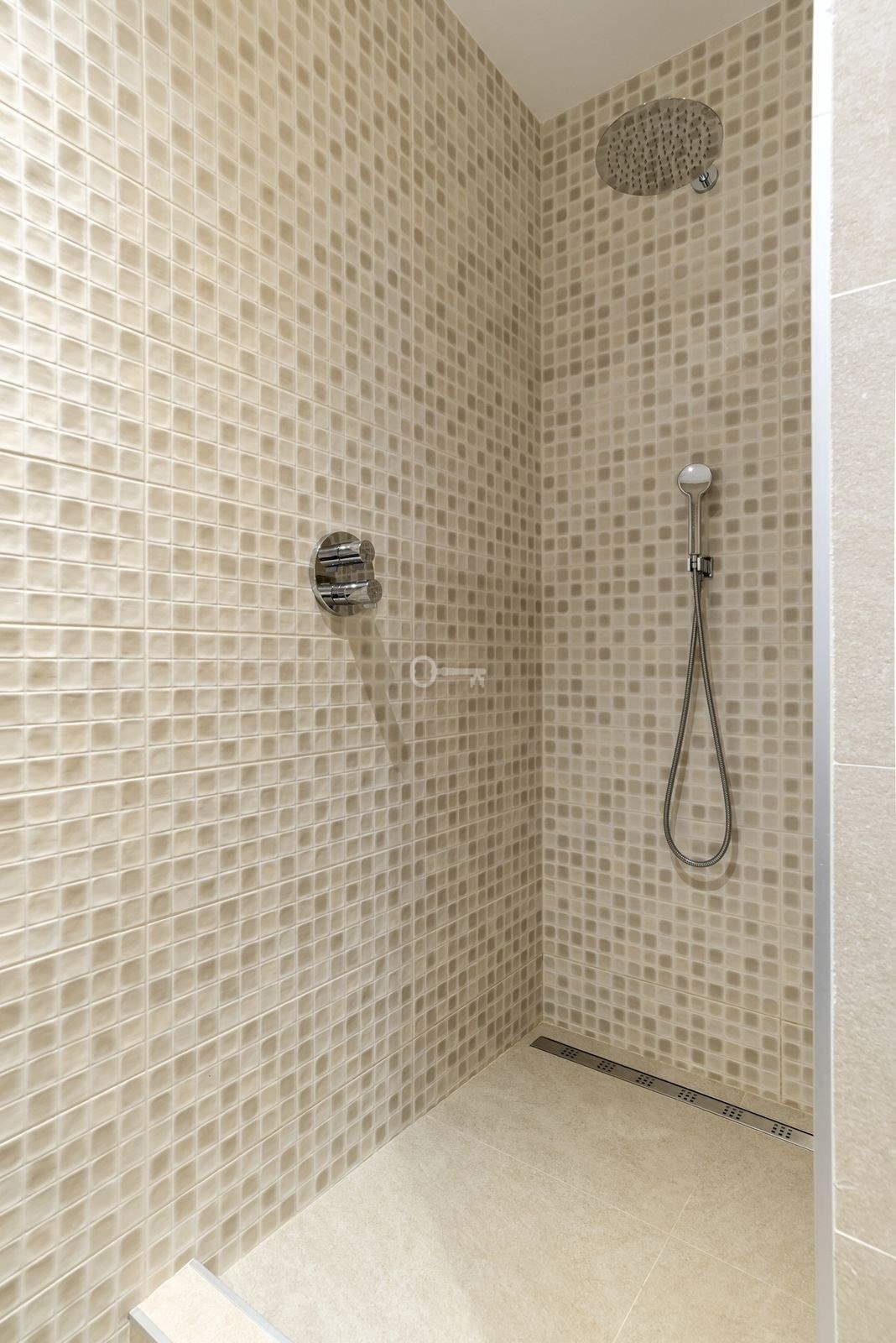 On the ground floor, the entrance hall welcomes you with elegant wooden doors and a guest toilet. The spacious 50 m² living room offers both a sitting area and dining area. A separate fully fitted kitchen with built-in NEFF appliances 2 x Fridge-freezer, Microwave, Oven, Dishwasher, Coffee machine, the kitchen opens onto a terrace.