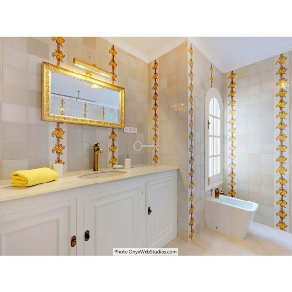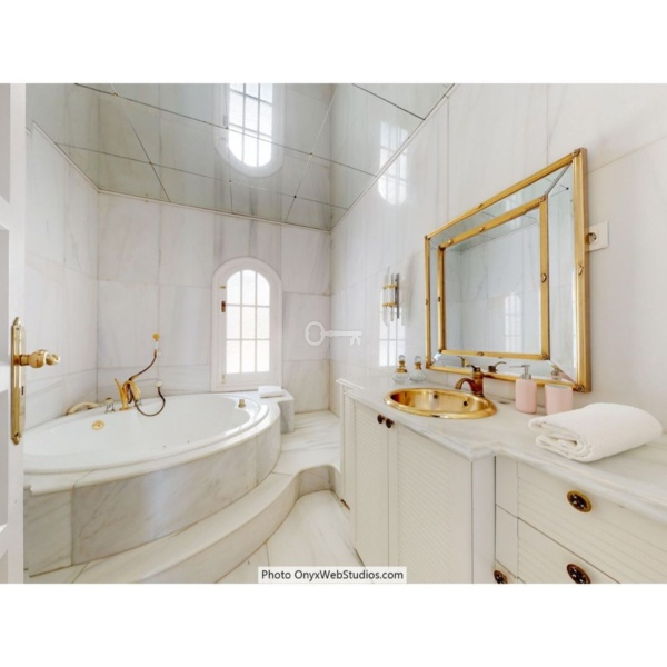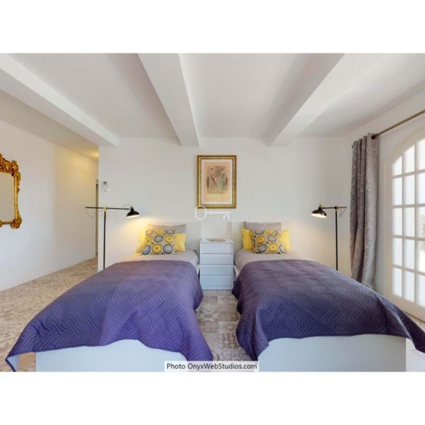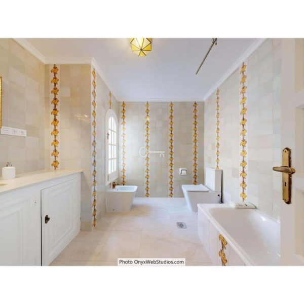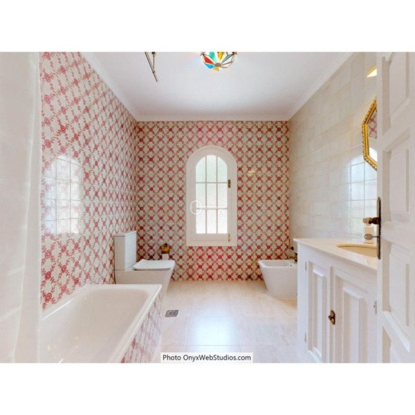 On entrance level there is a large kitchen with separate entrance. Upper floor consists of a big master bedroom with terrace, dressing-room, a further bedroom and 2 bathrooms. Beside the lounge there is further 2 bedrooms, one with bathroom en-suite, 1 more bathroom and a small room for dressing/office.