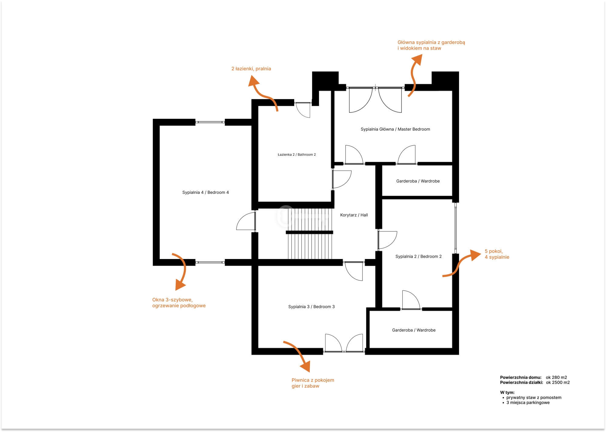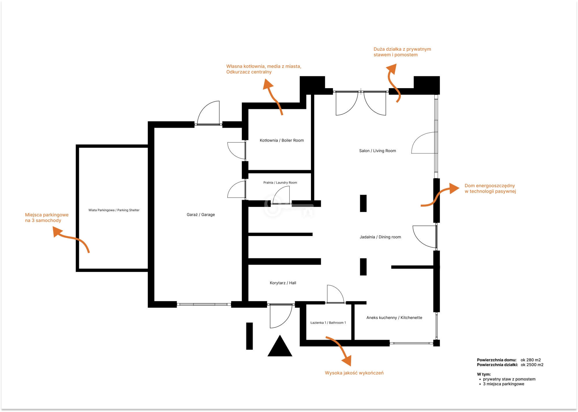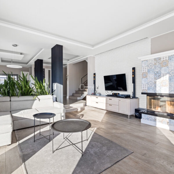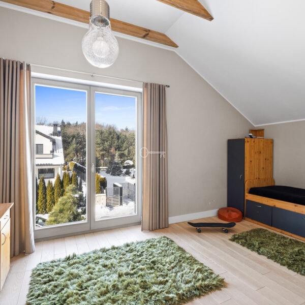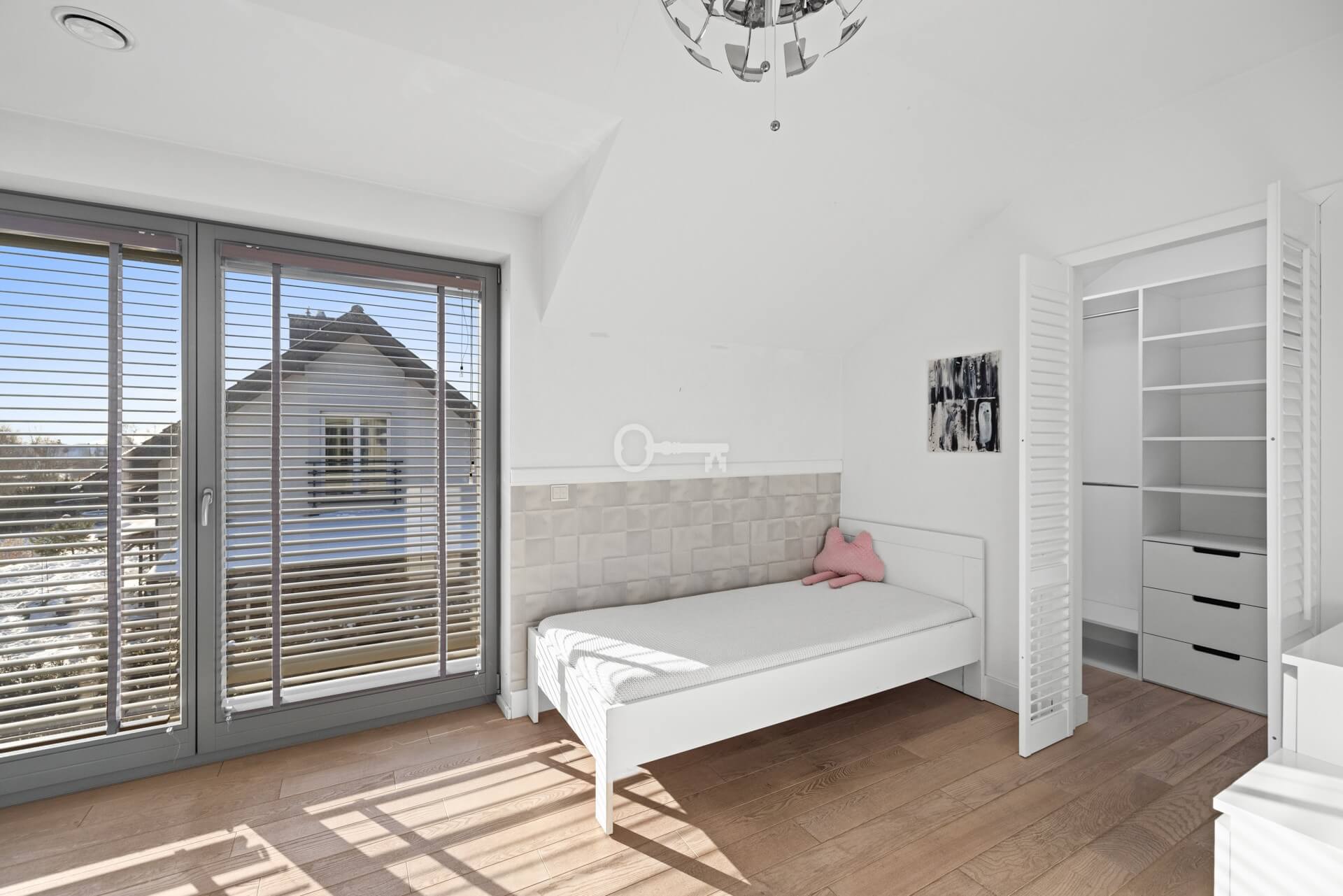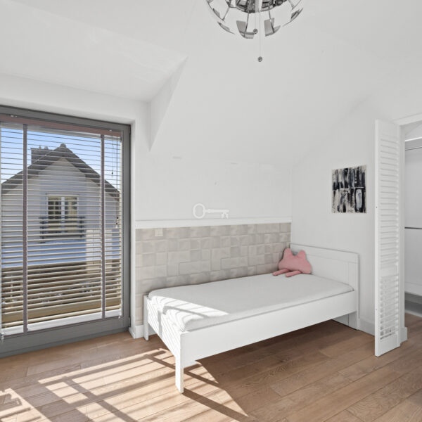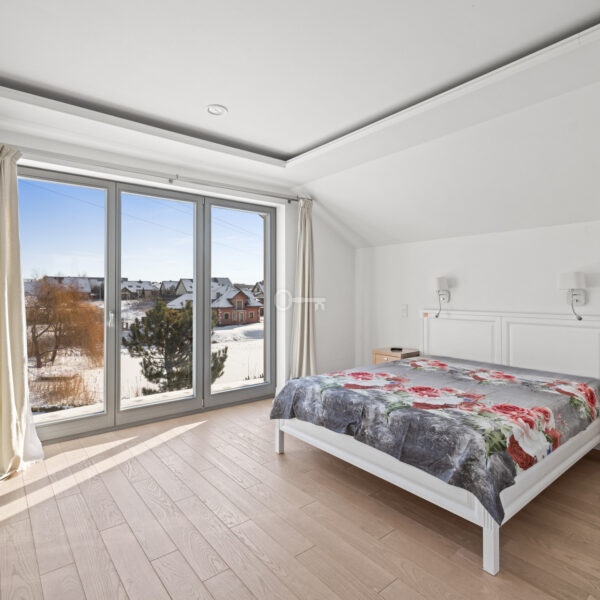 A functional detached house with direct, private access to a pond. The property was built using energy-efficient passive technology, which—combined with underfloor heating and triple-glazed wooden windows—results in very low maintenance costs (approx. PLN 600 in summer and PLN 1,000 in winter). This is an ideal offer for a client seeking a comfortable family home with an exceptional garden space and water “at your fingertips.”