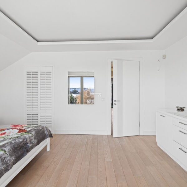 Passive construction technology | Very low maintenance costs | Private access to the pond shoreline | Unique view from the living room and terrace | Underfloor heating throughout the house | Whitewashed ash and stained oak flooring | Fireplace | Fully basemented | Recreational zone on level -1 | Abundant greenery