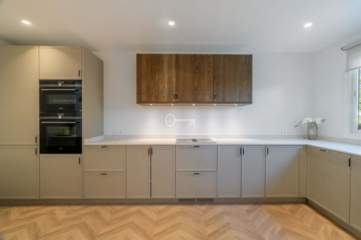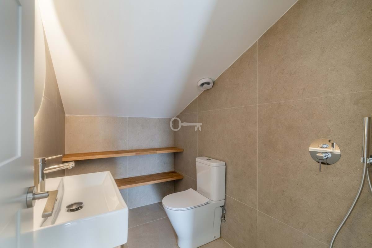 Inside, the ground floor spans nearly 80 m², comprising a stylish open-plan kitchen, spacious living room, entrance hall, and guest toilet. Scandinavian design principles define the space, with carefully selected, high-quality modern materials. Under the staircase, theres a custom wine storage area. All rooms are fitted with individually controlled Airzone systems for both heating and cooling, while underfloor heating is installed in all bathrooms. Wet areas are finished with tasteful, full-height tiles in a warm beige tone.