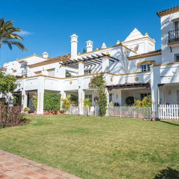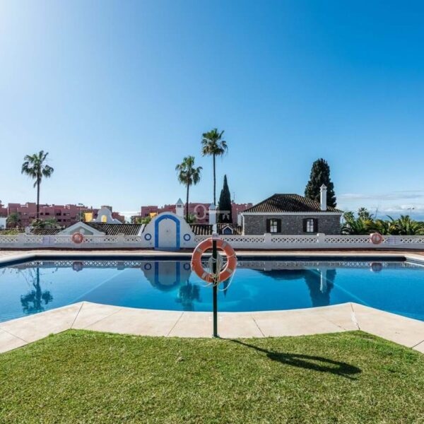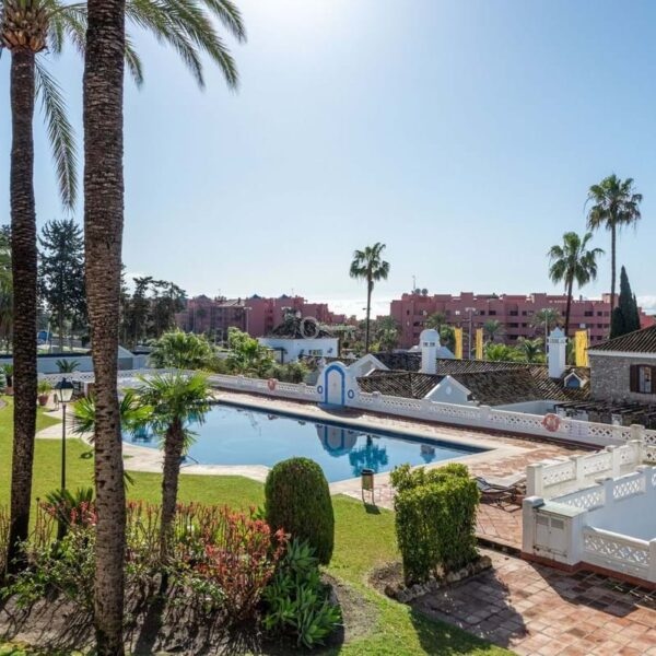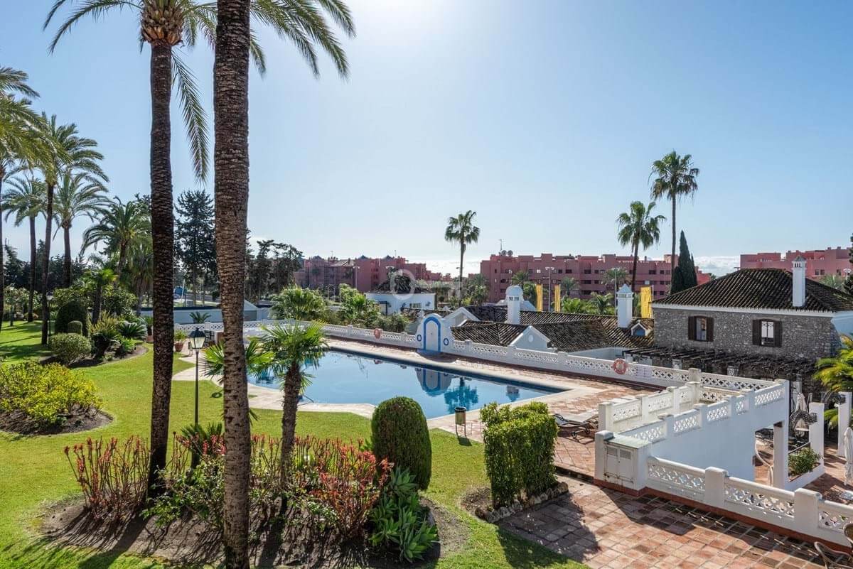 The property forms part of a charming community with beautiful landscaped gardens and a swimming pool, which can be accessed directly from the ground-floor terrace.