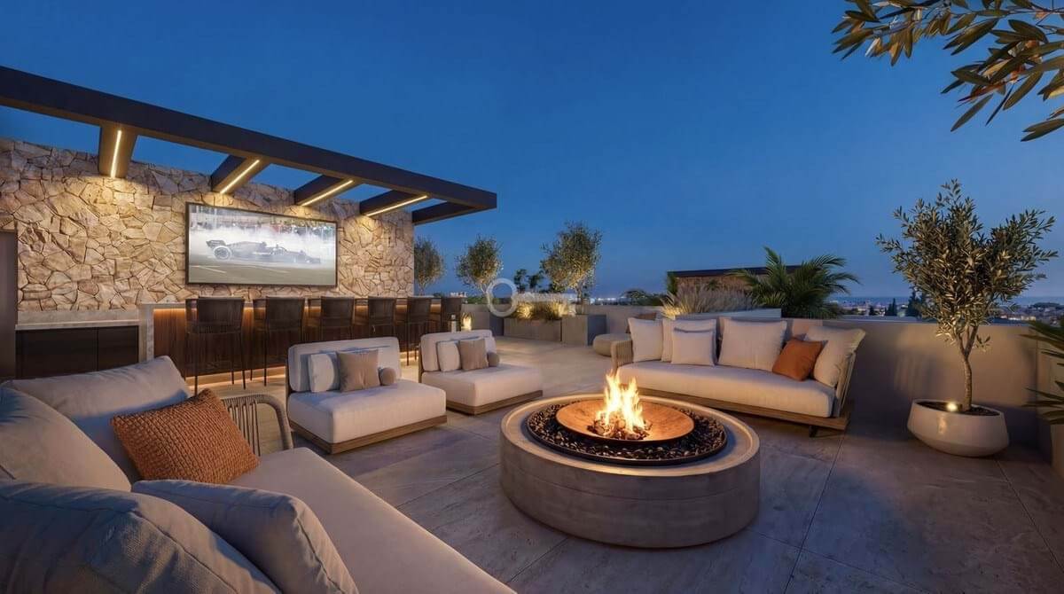 Large rooftop terrace ideal for entertaining and sunset views