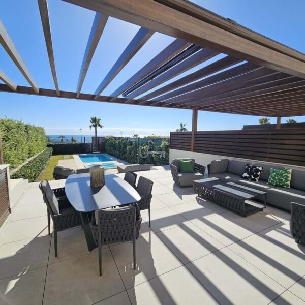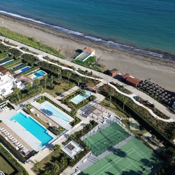 This beautiful house is located in an enviable beachfront position within the prestigious Velaya development on the New Golden Mile, offering breathtaking sea views and direct access to the beach.