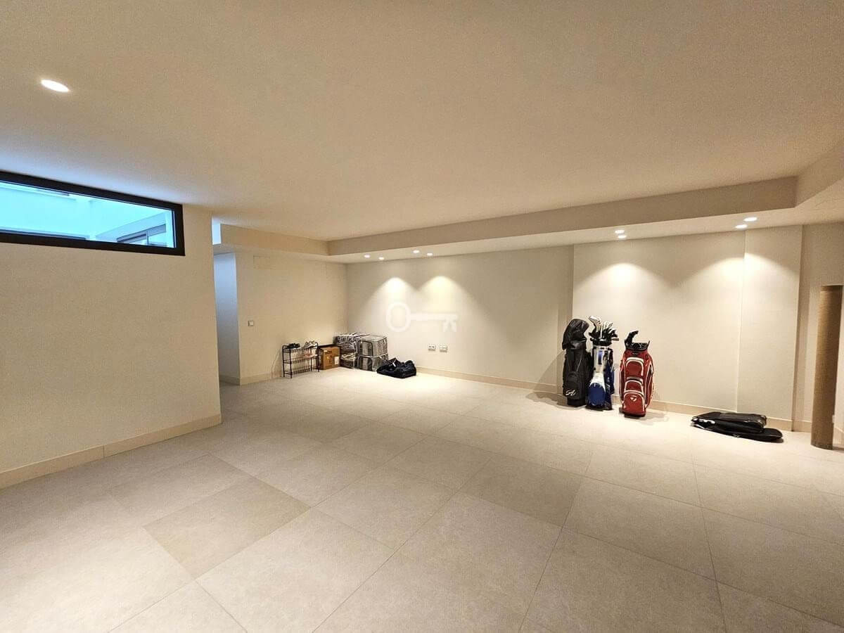 Downstairs in the basement is the fourth full bathroom and laundry room. The basement covers an area of 106m² and could be turned into more bedrooms, a cinema room, private gym, storage, kids area; whatever the new owner requires. Potentially this property could have 6 bedrooms with very little effort allowing larger families or those with staff to use this property to its full potential. The current owners have spared no expense in furnishing this home, with high end furniture from a well known interior designer, beautiful textured walls and carpeted staircases. Being sold fully furnished allows the new owners to acquire a key-ready beach front house which can be used in comfort from day 1. Included in the price are 2 underground parking spaces.
