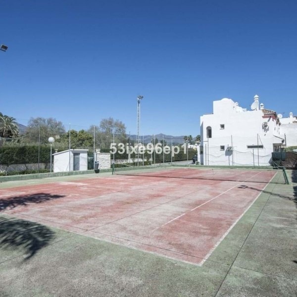 It is part of a well-maintained gated community with tropical gardens, a communal swimming pool, and a tennis court, all in a private and quiet residential setting.