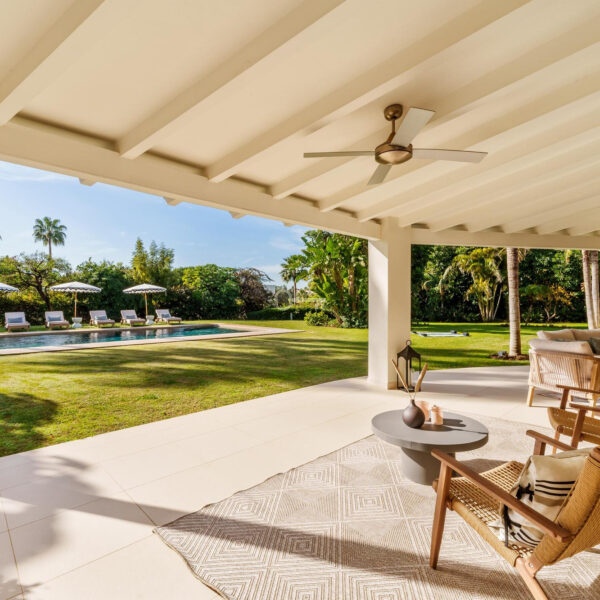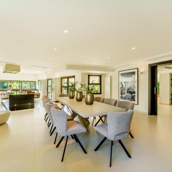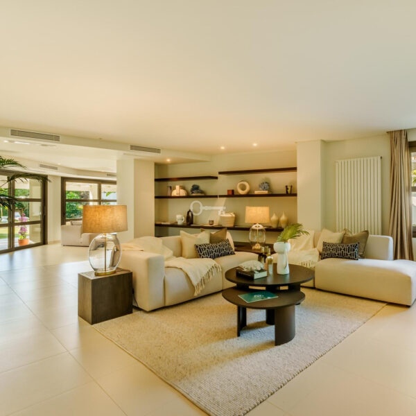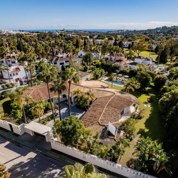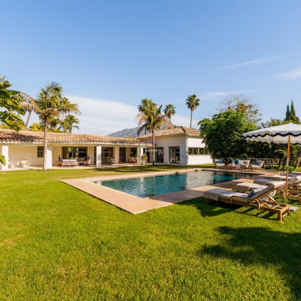 This elegant single-storey bungalow is located in the prestigious La Cerquilla area of Nueva Andalucía, on a large, flat plot of 3,062 m². The villa benefits from an ideal south-facing orientation, providing excellent sunlight throughout the day and partial views over the golf course.