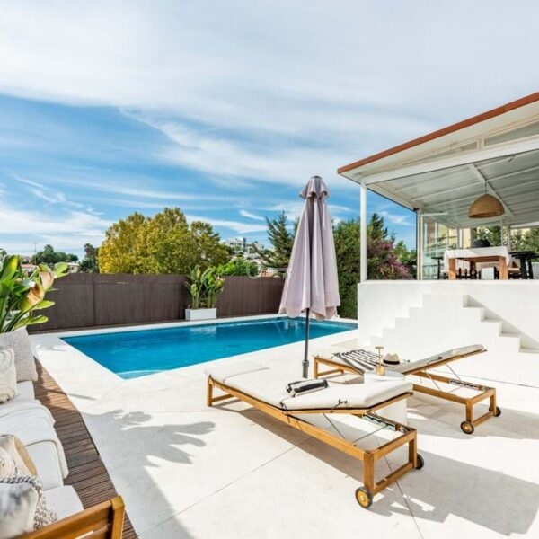 Discover this charming and spacious villa nestled in the highly sought-after and peaceful area of Nueva Andalucía, just minutes from Puerto Banús and the areas finest golf courses.