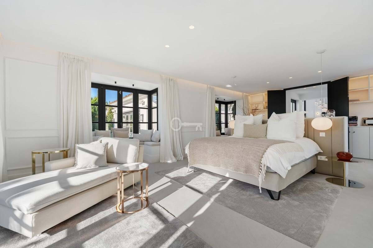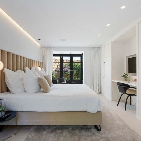 Set on a completely secluded plot, the arrival is framed by majestic, centuries-old olive trees that instantly establish a sense of prestige and tranquillity. The villa offers five beautifully appointed bedrooms, all luxurious en-suite bathrooms, crowned by an indulgent master suite featuring a private dressing room, and direct access to a serene terrace immersed in nature, yet with open views across the golf course.