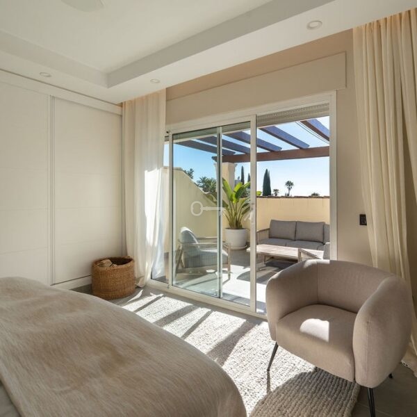 This beautifully renovated 4-bedroom townhouse is located in a private, peaceful, and secure gated community in the heart of Nueva Andalucía. Designed in a refined, sober Scandinavian style, the home offers a perfect balance of modern comfort and timeless elegance.