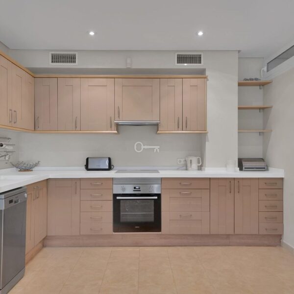 Beyond the main residence, the estate includes two independent, fully-equipped apartments. The first, situated in a separate annex, features a sleek modern kitchen opening onto a terrace with garden views, a stylish sitting area, and a master suite with an en-suite bathroom and dressing space. This annex is positioned above a secure garage that accommodates two to three cars, plus a golf buggy.