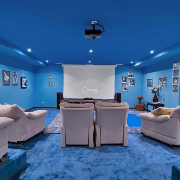 The property effortlessly blends style with functionality, a kitchen equipped with premium appliances and custom-built cabinetry. Additional highlights include a formal dining room, a private cinema, a cozy family lounge, and a fully equipped gym.