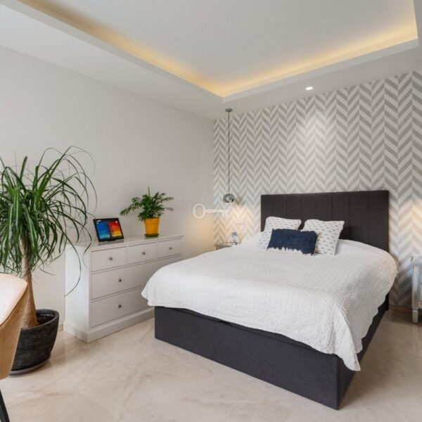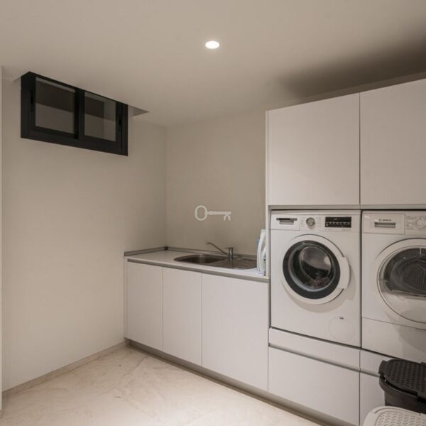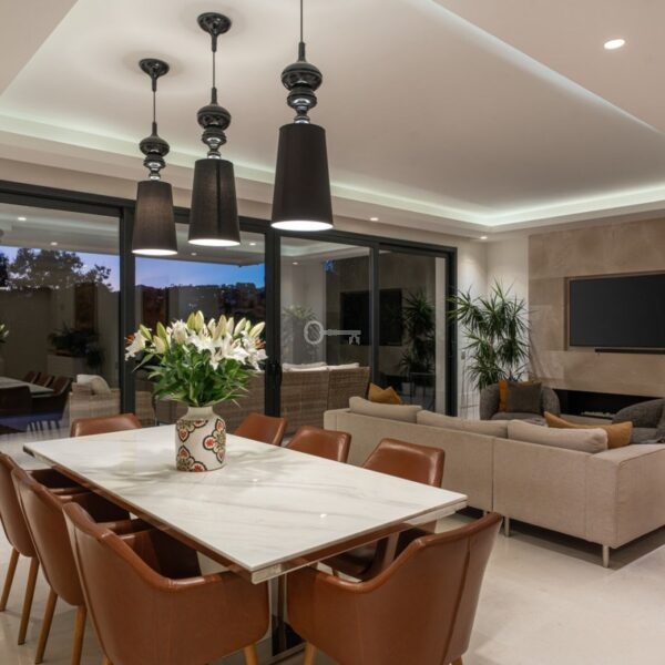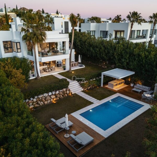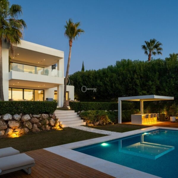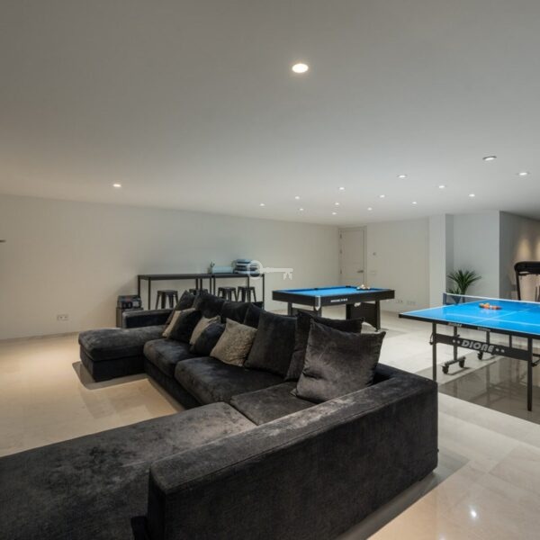 The lower level is dedicated to leisure and functionality, featuring a home cinema, entertainment area, private gym, and fully equipped laundry room. Combining architectural excellence, expansive outdoor living areas, and premium amenities, this villa represents a rare opportunity for a permanent residence or a high-end holiday home in one of Marbellas most sought-after gated communities.
