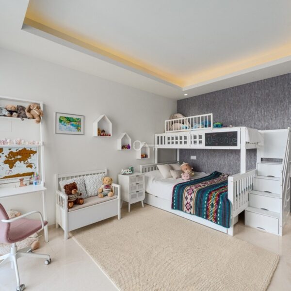 The property offers six generously sized bedrooms, including one currently configured as a dedicated office, providing flexibility for family living, guests, or remote work. Contemporary materials, clean architectural lines, and neutral finishes create a turnkey residence with strong lifestyle and investment appeal.