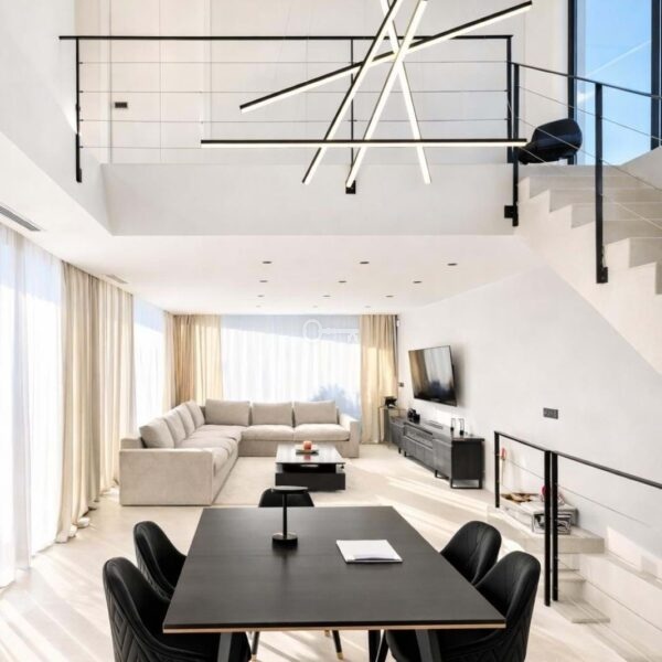 Distributed across three impeccably designed levels, the villa offers 2 spacious bedrooms and three luxurious bathrooms, with the possibility to create an additional bedroom or independent guest studio. The 287 m² of refined interior space is bathed in natural light, thanks to expansive floor-to-ceiling windows that blur the lines between indoor and outdoor living.