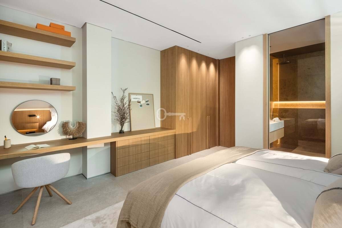 The villas sleeping quarters are designed with impeccable taste. The master suite, a true retreat, offers direct access to a private terrace where one can savor the expansive views. The en-suite bathroom is a sanctuary of indulgence, featuring a freestanding tub with a view and a walk-in shower adorned with premium fixtures. Additional bedrooms are equally refined, each with en-suite facilities and private terraces, ensuring that guests enjoy unparalleled comfort and privacy.
