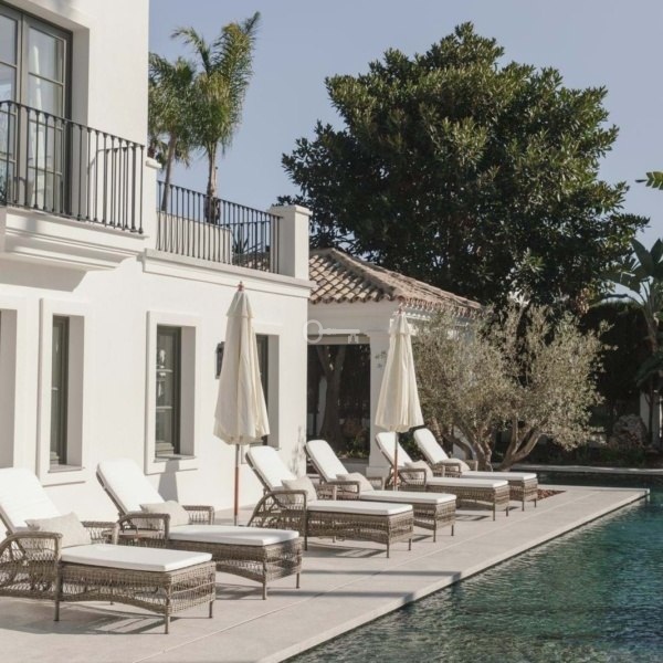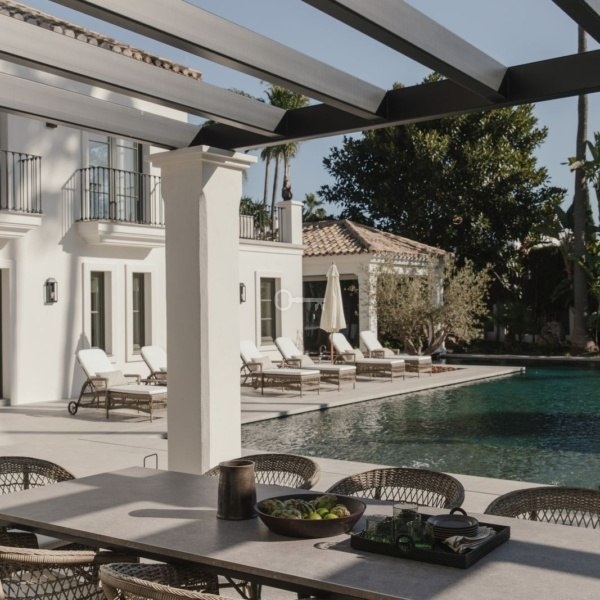 Recently built, the villa showcases outstanding craftsmanship and embraces a timeless Andalusian aesthetic with elegant architectural features. Covered porches provide shaded lounge areas ideal for relaxing under the Mediterranean sun, while expansive terraces invite alfresco dining and laid-back social gatherings. A sunken chill-out area with a custom-designed bar beside the private pool creates the perfect setting for unforgettable summer evenings.