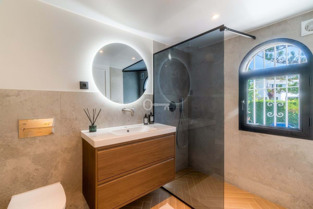 The community features meticulously maintained garden areas and a fantastic pool. Private parking for one car is available adjacent to the house. Conveniently located in a prime area, you’ll find yourself within easy reach of renowned golf courses, delightful restaurants, upscale shopping centers, and the pristine beach, offering you the epitome of luxury living.