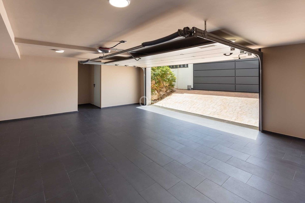 The villa features a private swimming pool and a beautifully landscaped garden, perfect for relaxation and entertaining. Enjoy the convenience of a private garage with space for two vehicles. The ground floor seamlessly integrates indoor and outdoor living with expansive glass doors that lead to your private terrace, while the open-plan kitchen is fully fitted and perfect for culinary enthusiasts.