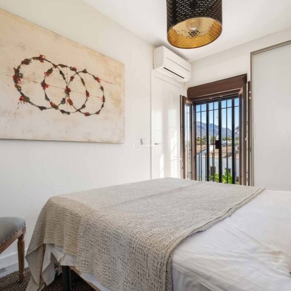 El Naranjal is distinguished by cobbled streets and a village-style setting. Residents benefit from a communal swimming pool with mountain views, a tennis court, landscaped gardens, and secure gated parking. Its location offers easy access to Puerto Banús, Marbella town, international schools, and local amenities, while retaining a quiet and private atmosphere.