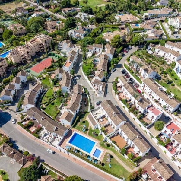 Located in El Naranjal, one of Nueva Andalucías established gated communities, this townhouse is set in the heart of Marbellas Golf Valley, surrounded by courses such as Los Naranjos, Real Club Las Brisas, and Aloha Golf.