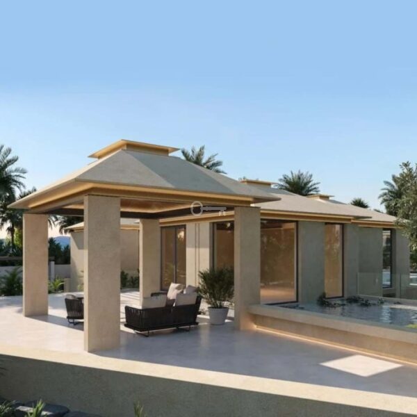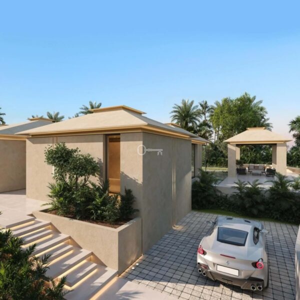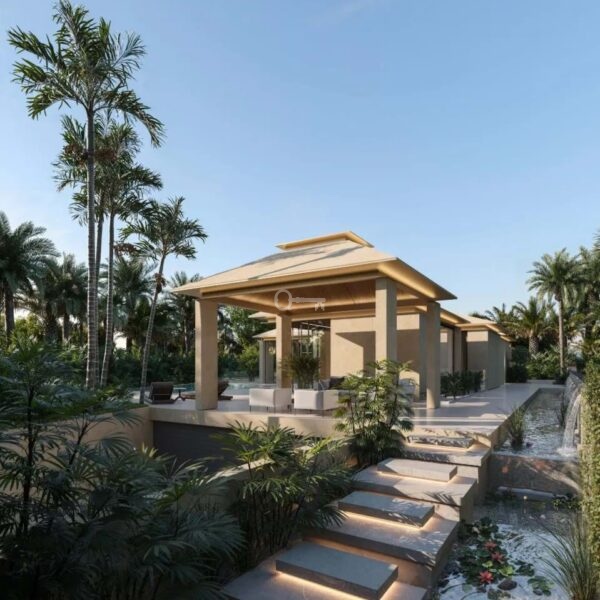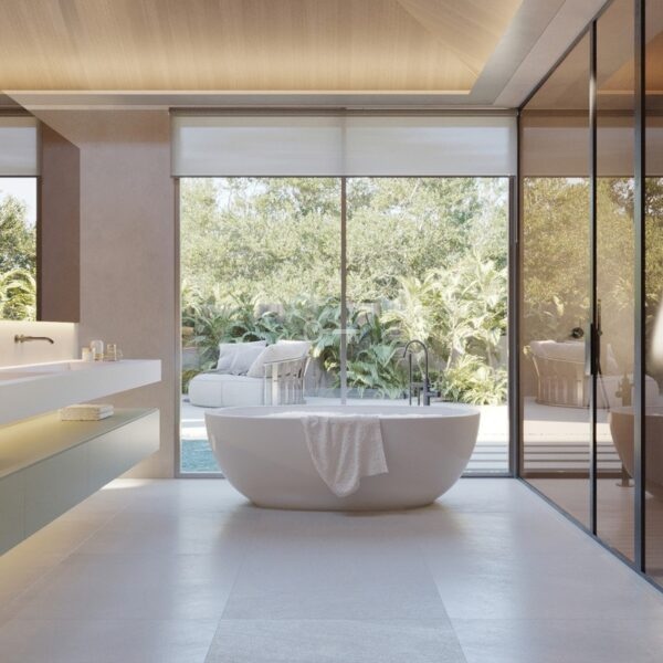The villa’s elegant design seamlessly blends contemporary architecture with the beauty of its natural surroundings.