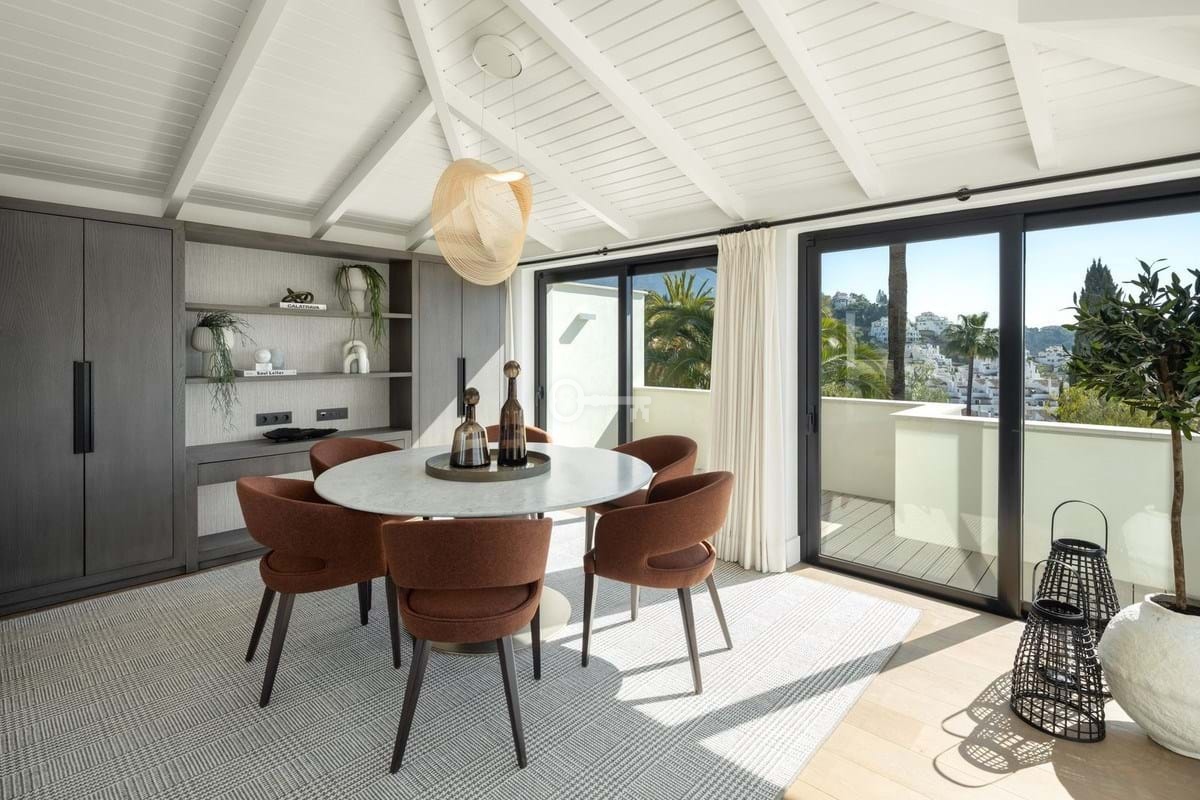 Villa Seraphina is a newly renovated masterpiece showcasing striking architecture and curated interiors, perfectly positioned within the exclusive gated enclave of Los Naranjos Hill Club in Nueva Andalucía. Enjoy sweeping views of the iconic La Concha mountain and the shimmering Mediterranean Sea from this exceptional residence.