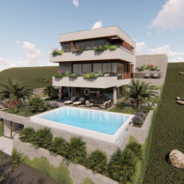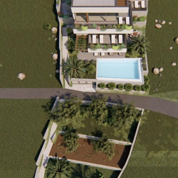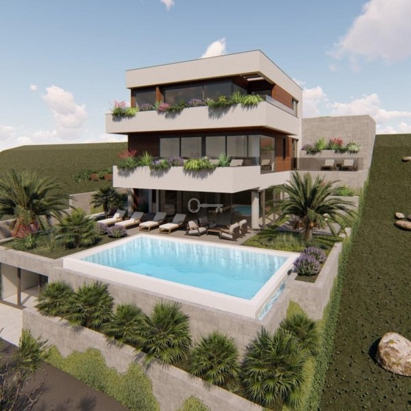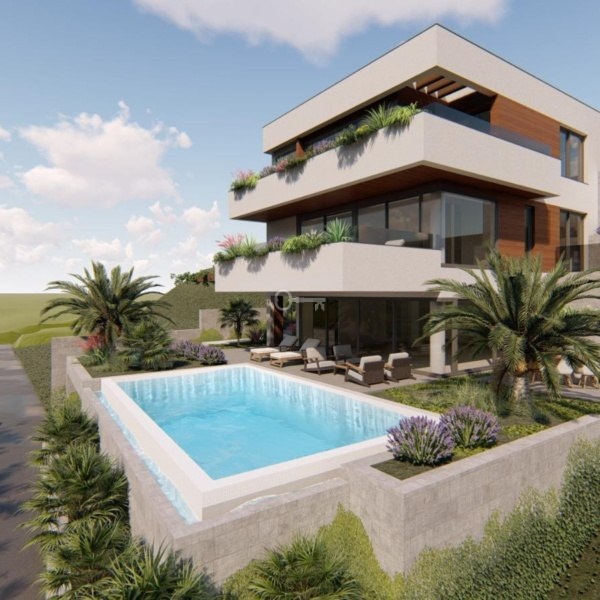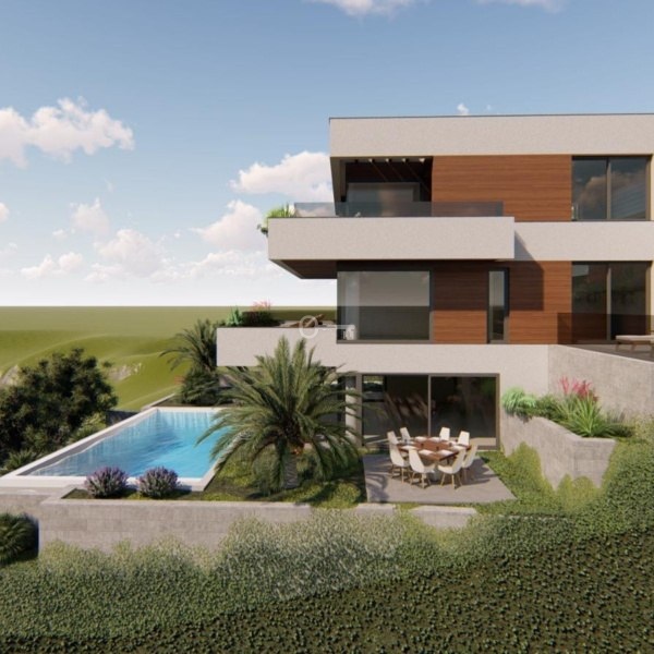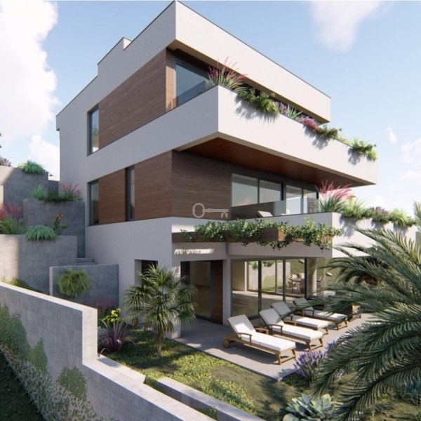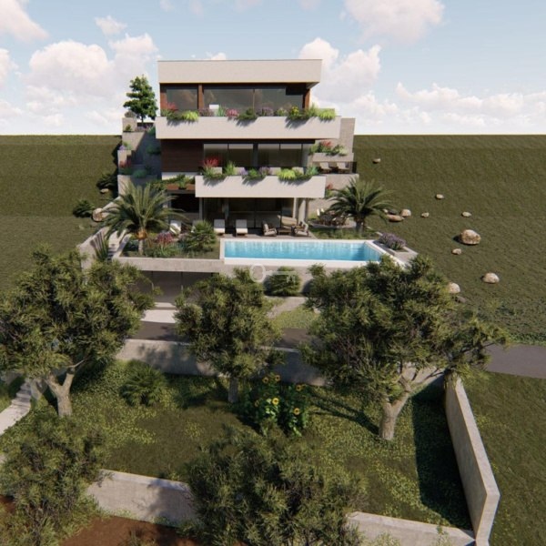 This modern villa combines luxury, privacy, and a unique location right by the crystal-clear sea and natural, rocky, and pebbly beaches. The villa will be built on a plot of 860 m², with construction starting in 2025. The total usable area of the villa will be 460 m², spread across four floors connected by an elevator: