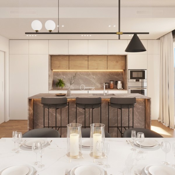 All kitchens feature a modern open-plan layout and come fully furnished and equipped with appliances (induction hob, oven, extractor hood, and sink). Each home also includes a private parking space in the price.