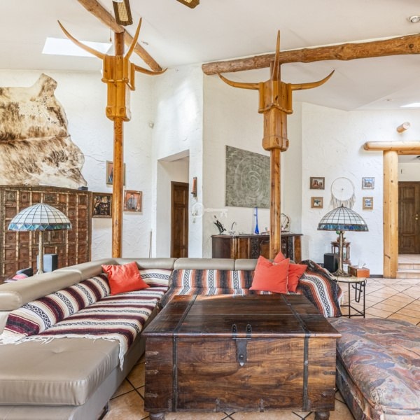 A combination of various traditions in one house. A unique place to live has been created from a combination of elements from Native American, Mexican, Spanish, and European cultures.