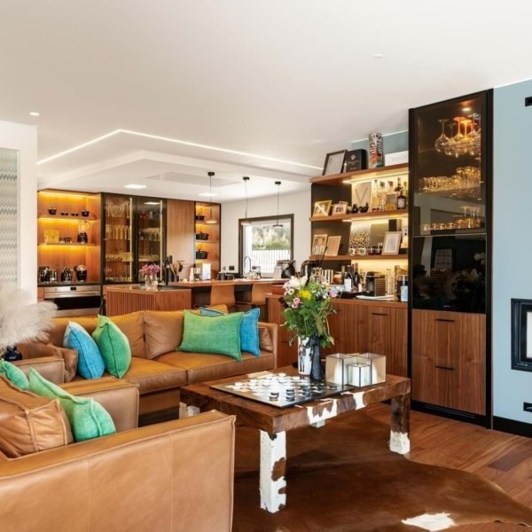 Large Living Room with Fireplace: Cozy and bright, with direct access to the garden and pool, ideal for relaxing or entertaining guests.