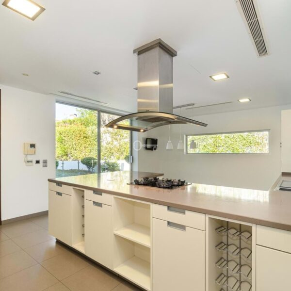 Fully equipped kitchen of the brand Miele, with a pantry space. Access to the terrace with canopy and barbecue area.